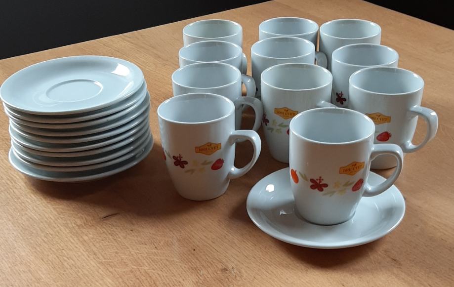 Prodam 11 kosov skodelic s krožnički za čaj. Cena za eno 3 eure, vseh enajst 30 eurov. Informacije 031/605 102