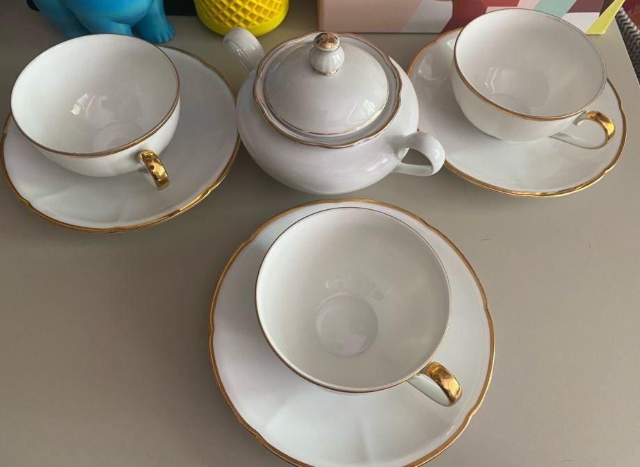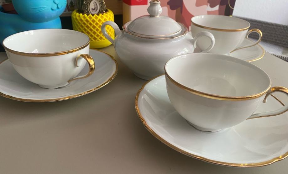 Prelep, eleganten, vintage komplet treh skodelic in sladkornice. Skodelice so velikosti za kapučino.