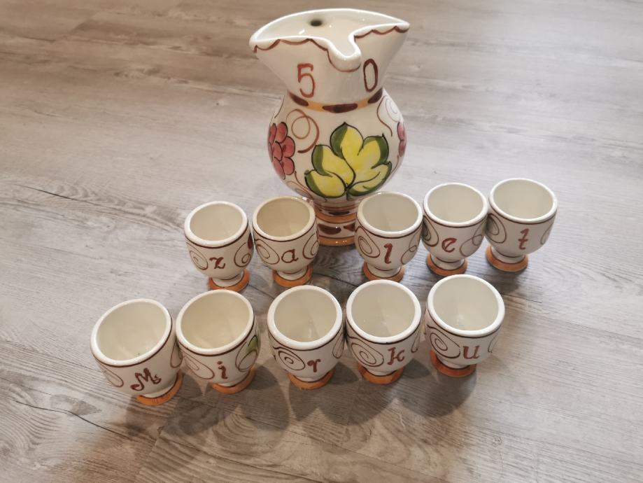 Prodam nov komplet glinenega vrča s kozarci. Komplet je ročno delo in primeren kot darilo za Abrahama za moškega z imenom Mirko.
