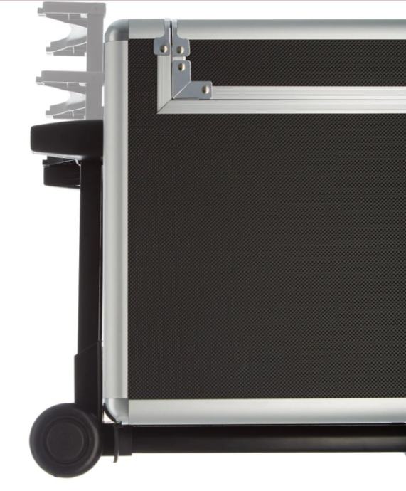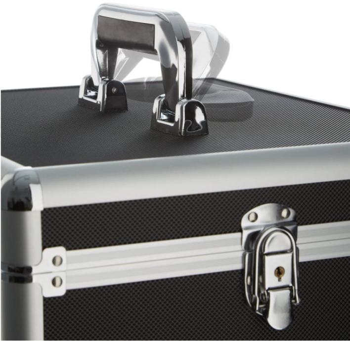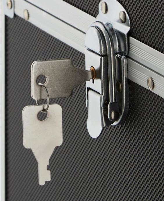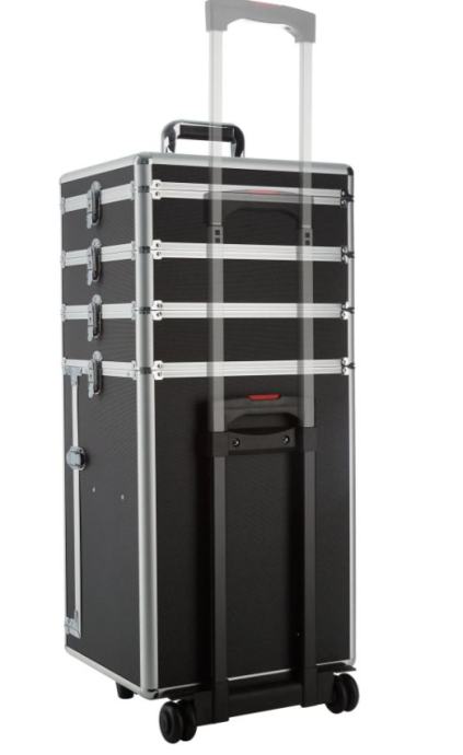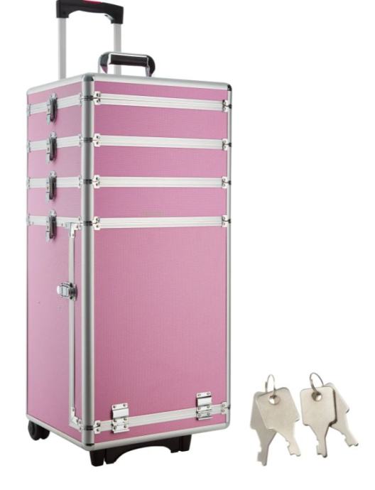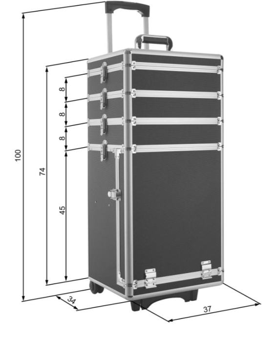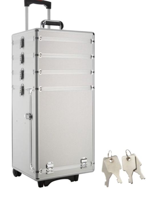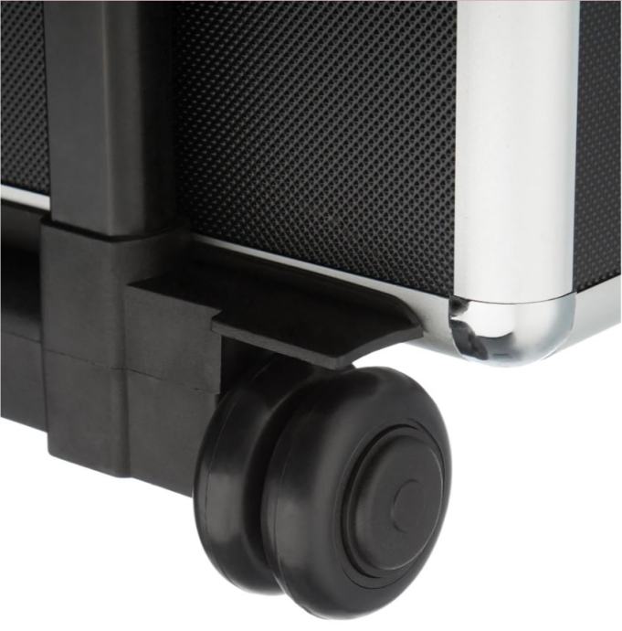 Kozmetični kovček odlikuje odlična izdelava. Kovček vključuje 4 predelke, vključno z enim velikim sprednjim žepom z 2 predeloma, in ponuja veliko prostora za shranjevanje za širok nabor lepotilnih izdelkov, kozmetike in opreme. Zahvaljujoč ločenim enotam lahko v kozmetični torbici hranite svoje predmete ločeno in organizirano, kar je odlično za uporabo doma ali na potovanju. Vse predelke kovčka se lahko zaklene in zagotovi, da so vaši izdelki in druge dragocenosti, kot je nakit, na varnem. Notranje površine so usklajene s črnim žametom za priročen dizajnerski videz. Zaradi dvojnih gumijastih koles in izvlečne noge je kovček primeren tudi za prenašanje težkega tovora. Teleskopski ročaj zagotavlja optimalno, osebno prilagojeno ravnanje pri vlečenju kovčka. Naš aluminijasti kovček je primeren za uporabo v različnih poklicih in pri konjičkih, vključno z uporabami kot lepotilni kovček, kovček umetnikov ličenja, kovček za pripomočke za nego nohtov, kovček za frizerske pripomočke, kovček za orodje, kovček za pilote, kovček za ribiško opremo, kovček za šiviljske pripomočke ali razstavni kovček in še marsikaj. Kozmetični kovček je odličen pripomoček za shranjevanje za strokovnjake, ki so veliko na poti.