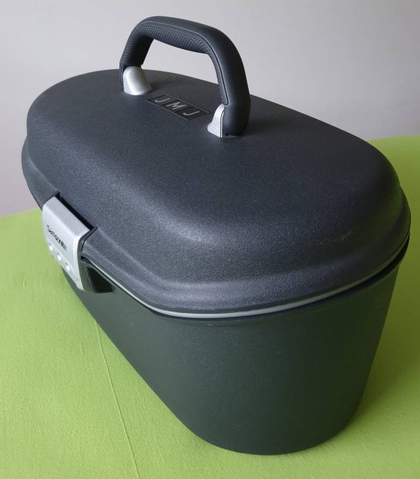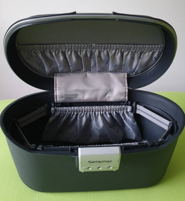 Prodam izredno lepo ohranjen in kakovosten kozmetični kovček znamke Samsonite in antracit ne barve v kombinaciji s svetlosivo. Nepoškodovan in čist - tako zunanjost kot notranjščina. Dimenzije so na fotografiji.