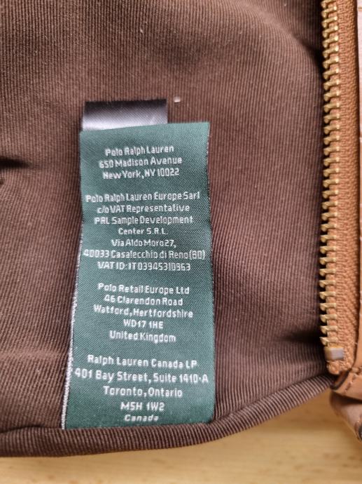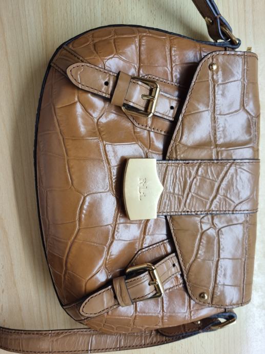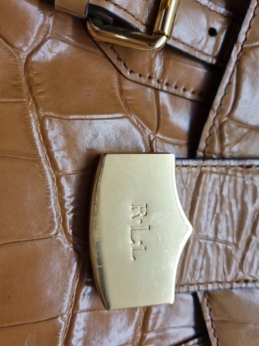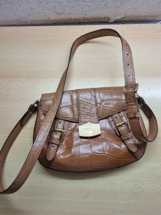 Usnjena torba Lauren Ralph Lauren, original, širina zgoraj 23 cm, širina spodaj 27 cm, višina 20 cm, debelina 3 cm, dolžina traku 130 cm