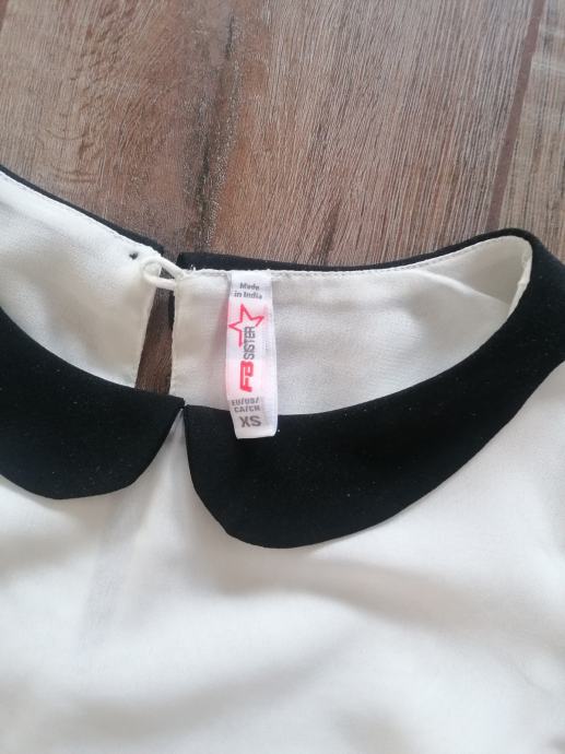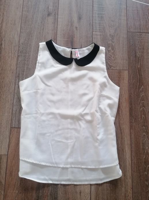 Ker mi je premajhna, prodam zelo lepo, enkrat oblečeno belo elegantno poslovno bluzico, s črnim ovratnikom. Cena 4 evre (ppt moj).