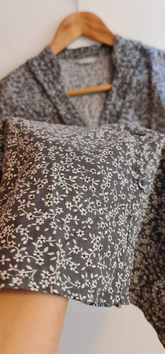 Simpatična cvetlična bluzica v sivo/beli barvi. Kot nova. Velikost L, raztegljiva. Cena: 8€+ppt