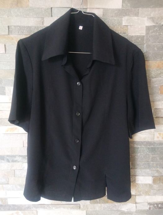 Ženska klasična črna bluza s kratkimi rokavi. Bluza se zapira na majhne črne gumbe. Velikost 40, dolžina 58 cm, širina čez prsi 53 cm, dolžina rokava 30 cm. Material, 80 % viskoza, 20 poliester. Malo nošena in zelo dobro ohranjena.