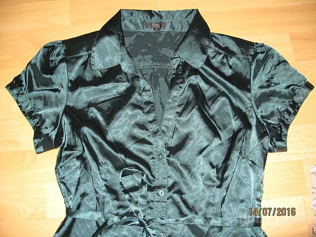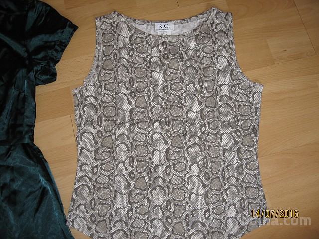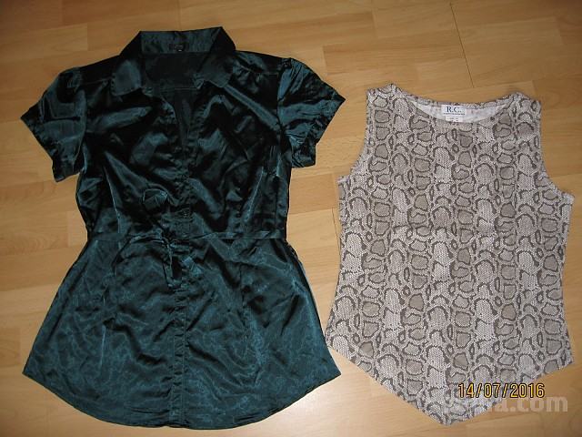 Prodam novo, nenošeno žensko satenasto, temno zeleno bluzo s pasom. Bluza je telirana, daljša, elegantna. Prodam tudi novo, nenošeno žensko majico v zeleno - drap barvi, v vzorcu kače, spredaj zaključek na špico. Cena za komplet je 14,00 eur z navadno ptt ob predhodnem nakazilu na moj trr.