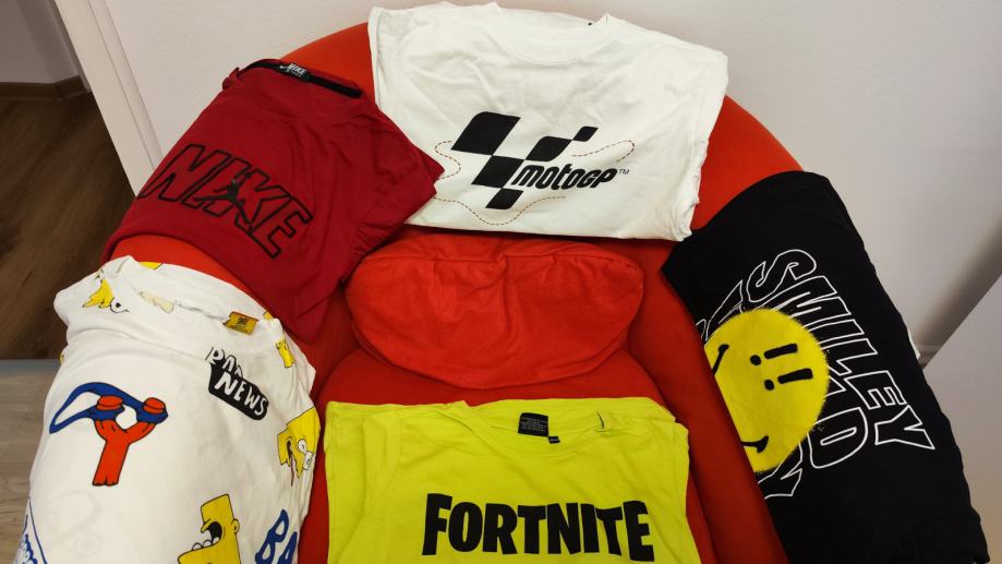 Prodam pet majic na kratki rokav. Za starost od 10-12 let, velikosti 150-158.