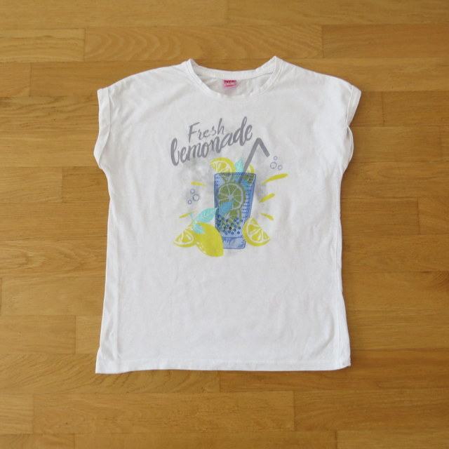 Prodam ODLIČNO ohranjeno dekliško majico, majčko št. 158/164 (DEJANSKA VELIKOST JE ŠT. 152/158), bele barve z motivom limonade in napisom, atraktivnega videza.