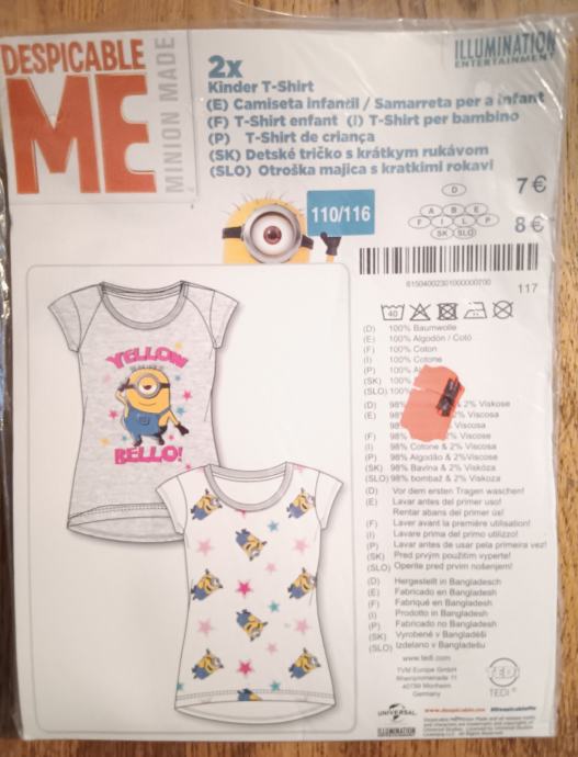 Prodam majico minion vel.110-116/5-6let novo 2 majici zapakirani