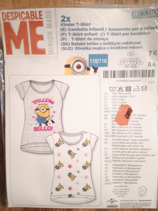Prodam majico minion vel.110-116/5-6let novo 2 majici v kompletu