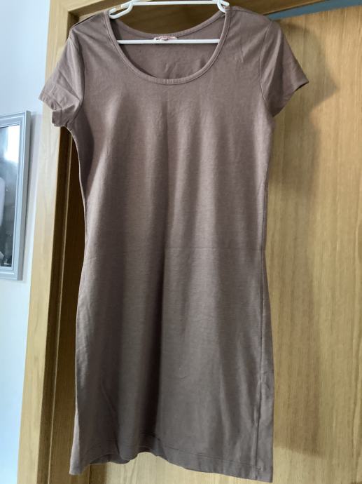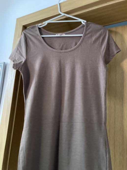 Prodam novo daljšo rjavo majico, s kratkimi rokavi. Majica je primerna za velikost S/ m. Dolžina: 90 cm, čez prsi meri 37 cm. Ni raztegljiva. V ceni je že poštnina.