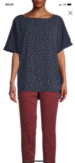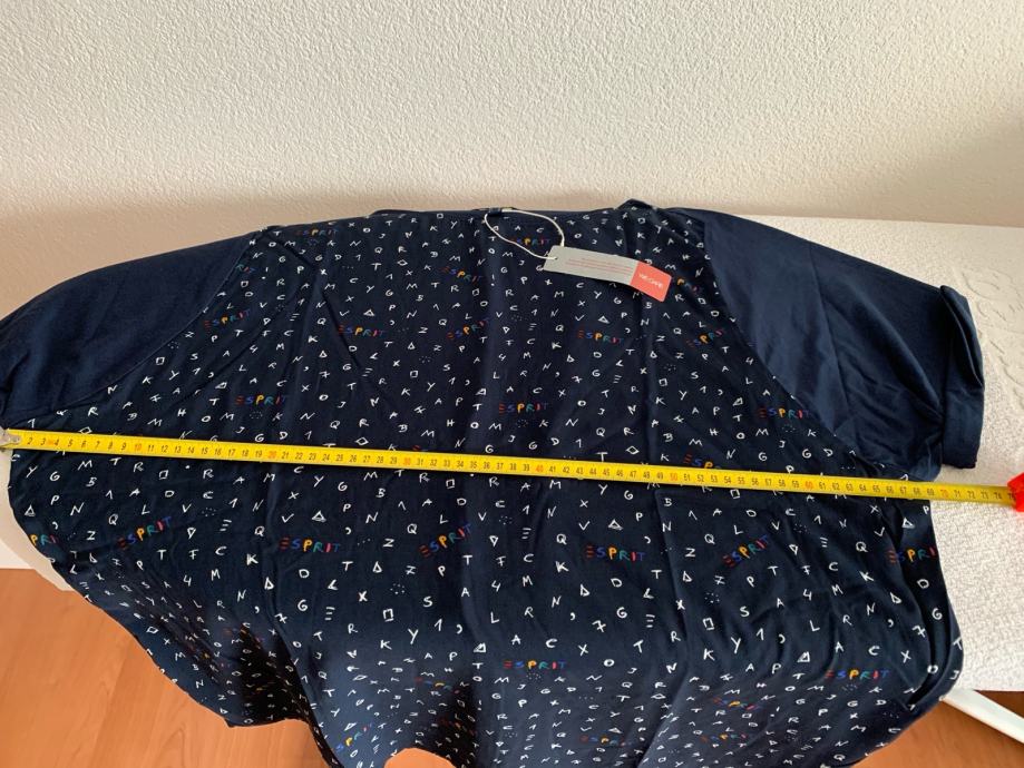 Prodam novo žensko majico, znamke Esprit, modre barve s potiskom, št. XL, širši model. Merjeno pod pazduhami, 69 cm.
