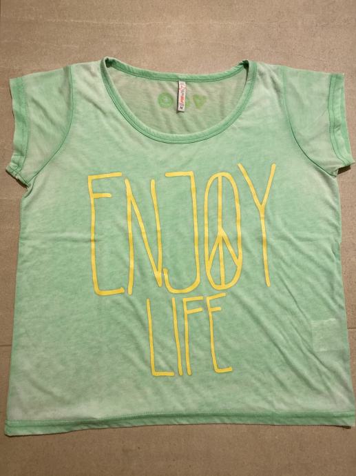 Prodam MAJICO, znamke Fishbone, v lepi nežni pastel zeleni barvi, z napisom ENJOY LIFE v rumeni barvi. Velikost: S.
