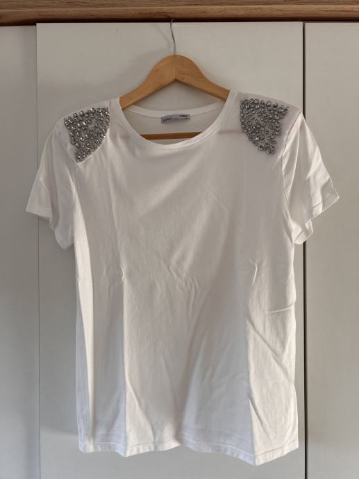 Majica ZARA s srebrnimi detajli na rokavih - 'kristalčki' in podloženimi rameni. V odličnem stanju, redko nošena, kot nova. Velikost M.