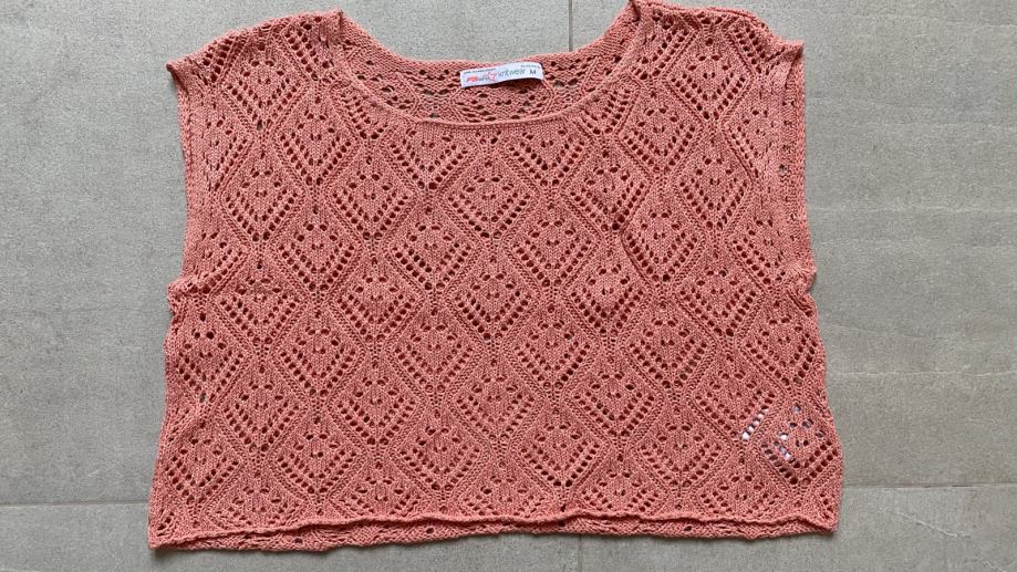 Pletena MAJICA FB KnitWear crop puloverček koralna - vel. M - kot NOVO