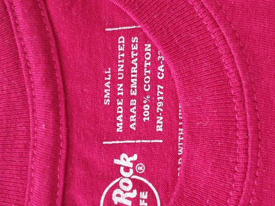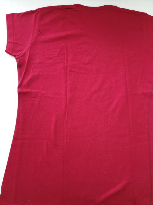 Nova, nikoli uporabljena majica, 100-odstotni bombaž, velikost S, na sprednji strani vzorec, na hrbtni gladka temno rdeča barva, kratek rokav.