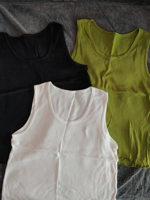 Prodam zelo lepo ohranjene ženske majice s kratkimi rokavi in na naramnice (glej slike), primerne za obdobje pomlad-poletje. Majice so v velikosti L. Če jih kupite več, dobite popust. Cena ene majice je 3€.