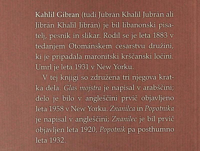 GLAS MOJSTRA / ZNANILEC / POPOTNIK, Kahlil Gibran