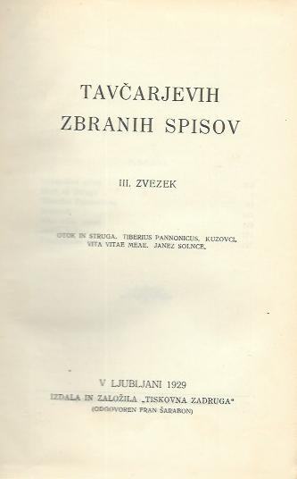 Naslov Tavčarjevih zbranih spisov III. zvezek / [uredil Ivan Prijatelj]