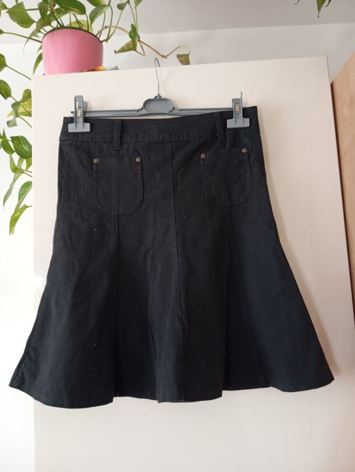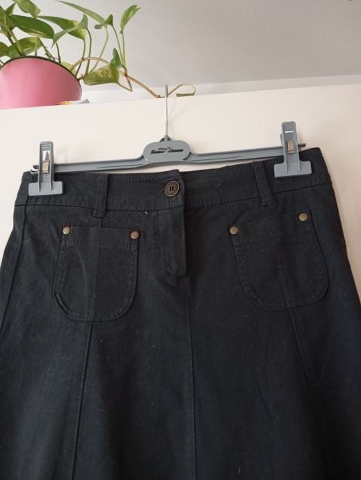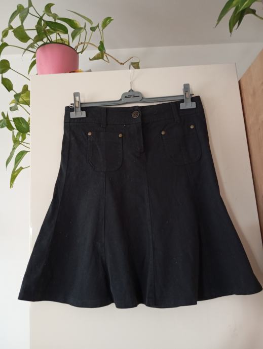 Nikoli nošeno, založeno v omari, ni podloženo, malenkost raztegljivo, v pasu meri 35 do 38cm, dolžina je 50cm, ne menjam, ptt ni vključena v ceno