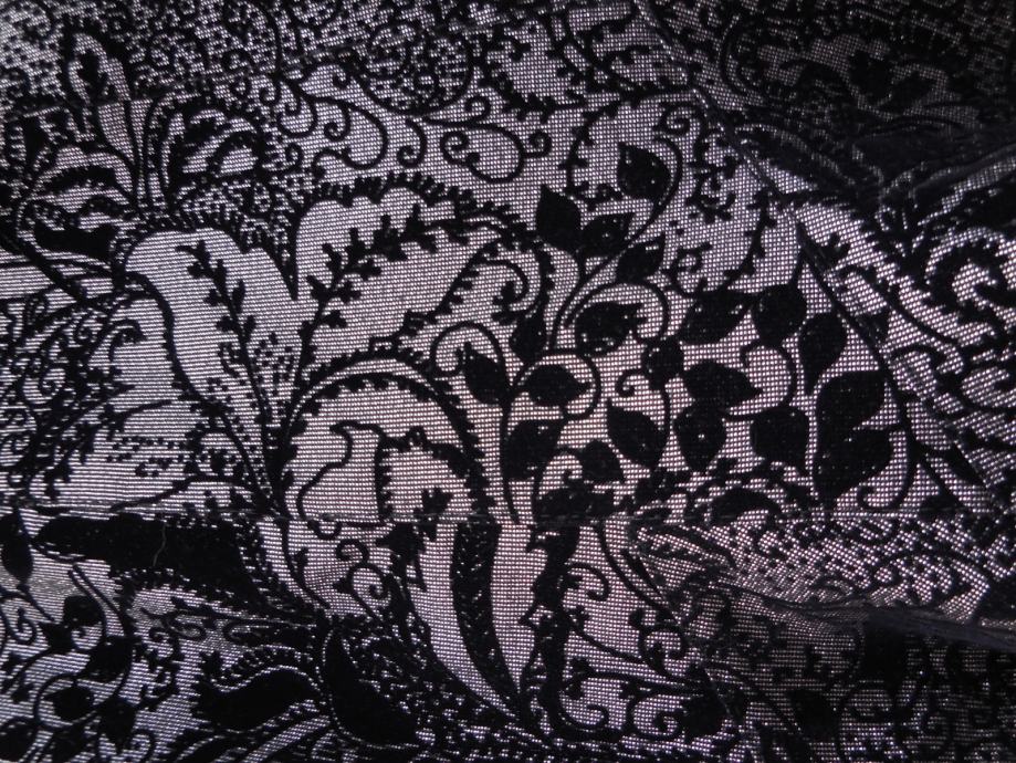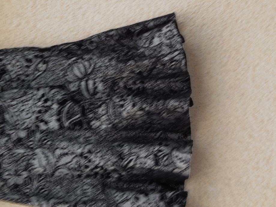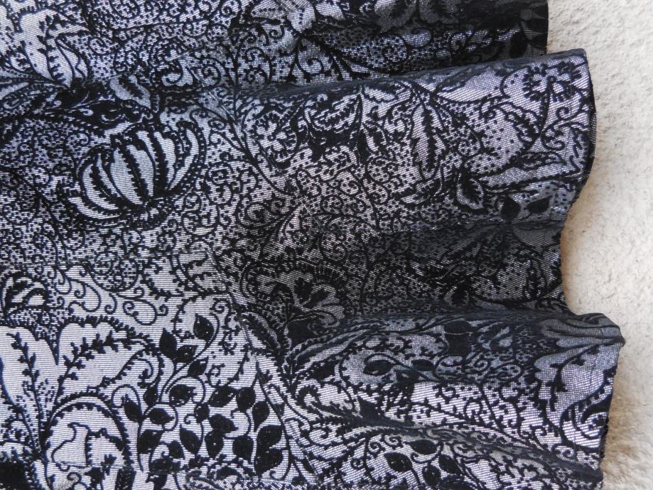 Samo kupljeno, lahko, široko, svetleče, ni podloženo in ni raztegljivo, zapenja se ob st rani na zadrgo.