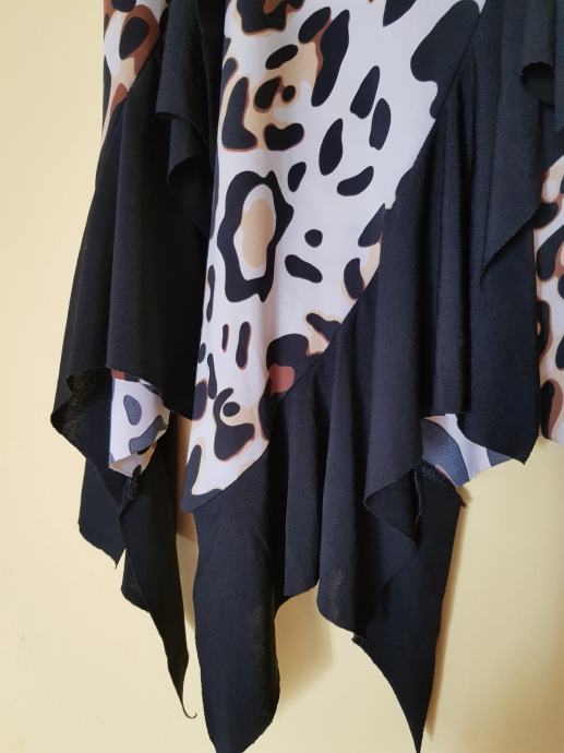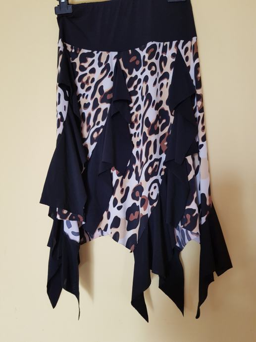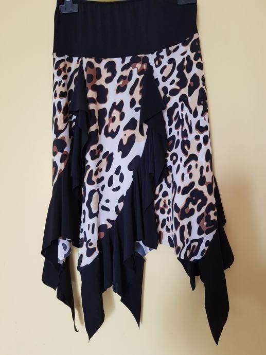 Novo, ni podloženo, je raztegljivo, v pasu ima elastiko in meri od 30 do cca 37cm, dolžina je 70cm