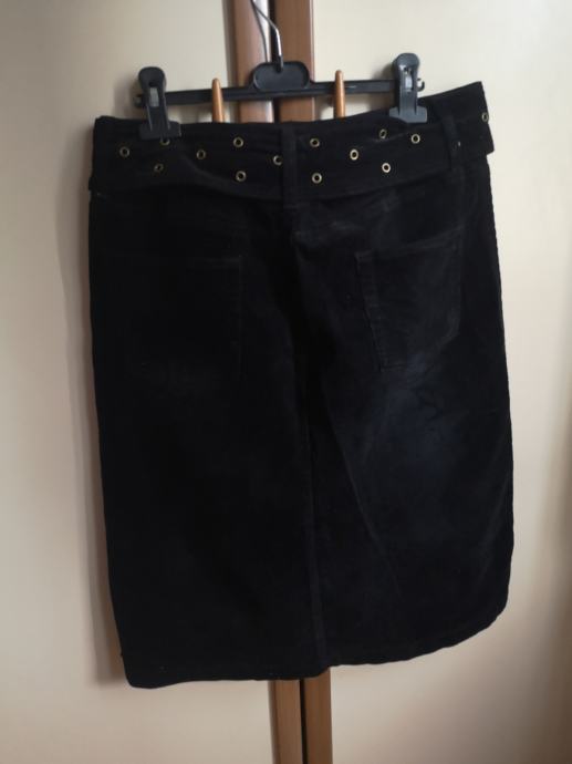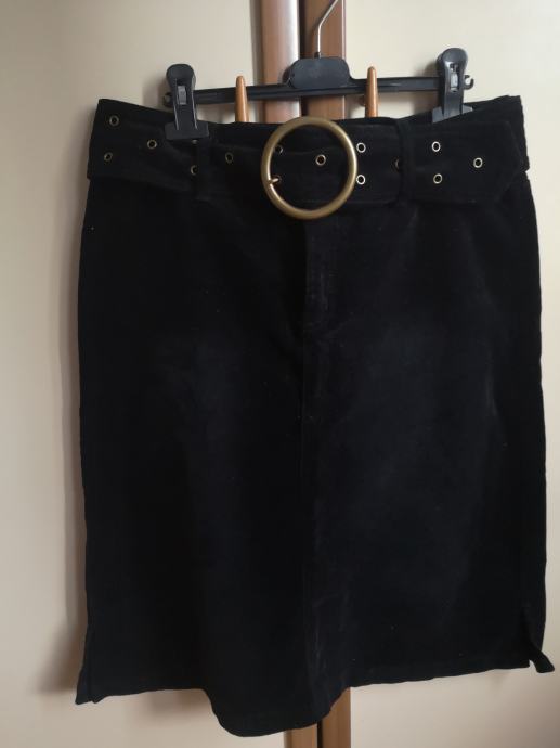 Krilo iz črnega, drobno rebrastega žameta, št. 44, XL, A kroj-rahlo navzven, razporki ob straneh. Pas se lahko sname. Lepo ohranjeno. Obseg pasu 44x2 cm, dolžina 64 cm.