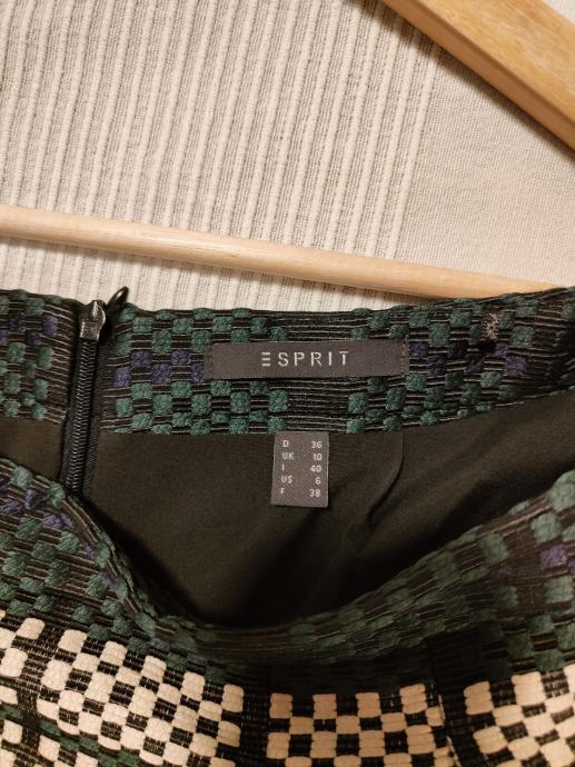 Esprit krilo je kombinacija treh barv - zelene, črne in bele. Je velikosti EU 36, širina v pasu je 37cm, dolžina pa 55cm.