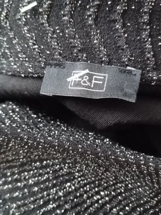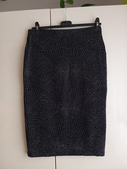 Novo, črno z vpeljanimi srebrnimi nitkami, ni podloženo, je raztegljivo, v pasu ima elastiko in meri 36 do cca 40cm, dolžina je 63cm, ne menjam, ptt ni vključena v ceno
