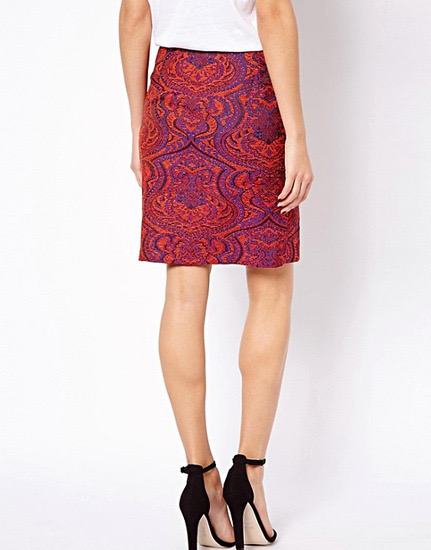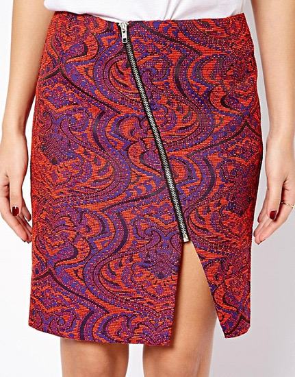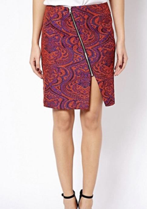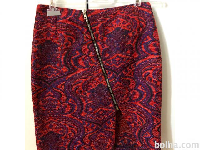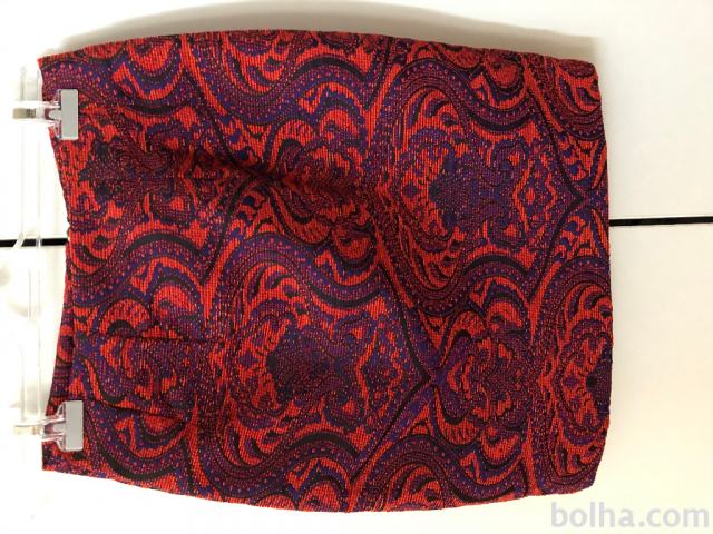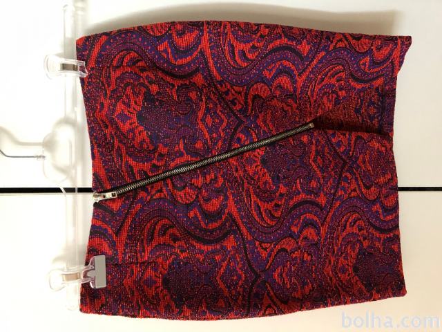 Jacquard, žakard pisano krilo vijolično-oranzno-modro barvno kombinirano, zlata zadrga, kompaktno in kvalitetno. Usterza xs, 34.