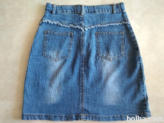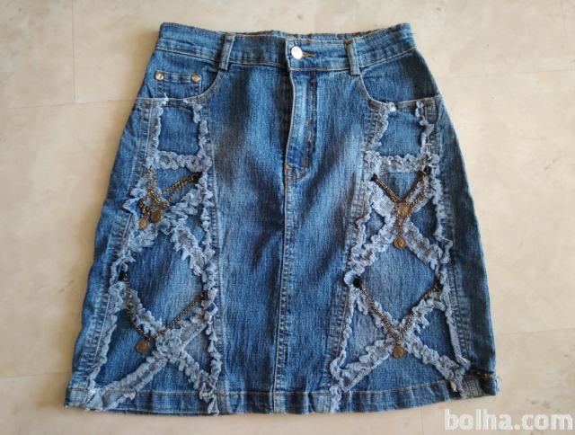 Kavbojsko krilo modre barve, dolžine 43 cm, širina v pasu 32 cm, čez boke 43 cm, spodnji rob pa 48 cm, velikost S.