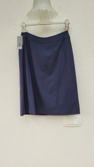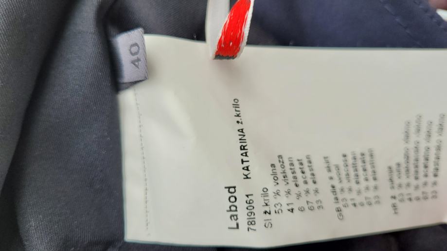 Temno modro, elegantno, vrhunski material (mešanica, 45 % volne), nekoliko raztegljivo, zato udobno.