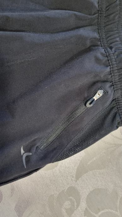 So temno modre barve, iz 100% poliestra, so zelo dobro ohranjene. Nosil jih je samo en otrok. Imajo dva stranska skrita žepa, ki se zapenjata z zadrgo.V pasu so stisnjene z elastiko. Regulirati se dajo tudi z vrvico, ko je napeljana v pasu. Na zadnjem delu imajo od pasu pa do konca žepov mrežico. Poglejte si prosim fotografije.