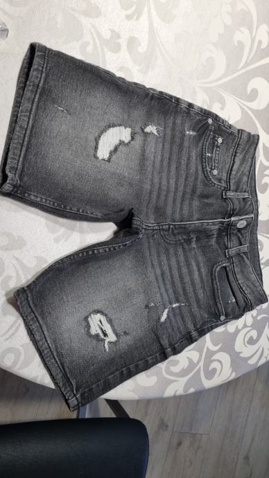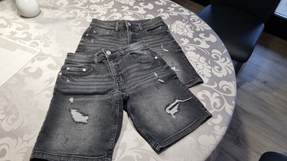 Imamo dva kosa, ker imamo dvojcka. So sive barve, iz 100% bombaža, zelo kompaktnega, so zelo dobro ohranjene, ker praktično niso bile nošene. Imela sta jih pri babici, kot rezervo. Imajo dva stranska skrita žepa in zadaj dva žepa našita po vrhu. So natrgane, samo je pod tem, kjer je strgano našito blago-jeans, da je to samo nakazano in ni lukna skozi in se ne more trgati naprej.