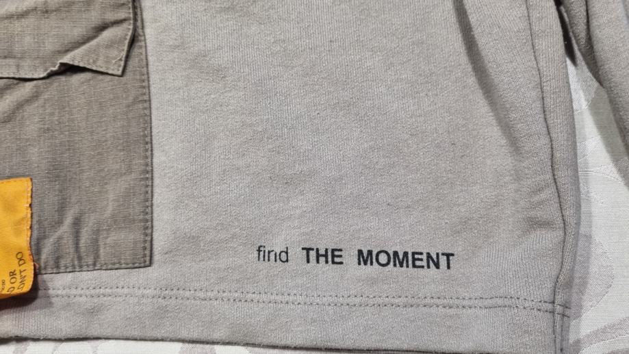 So svetlo sive barve, iz 100% bombaža, zelo kompaktnega, so zelo dobro ohranjene. Nosil jih je samo en otrok. Imajo dva stranska skrita žepa in po dva žepa na vsaki hlačnici. V pasuje elastika, sirina pasu pa se da tudi regulirati z trakcem.