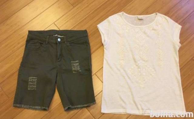 Prodam komplet bela kratka majica in zelene kratke hlače za punco 158cm oz 12let/13let.
