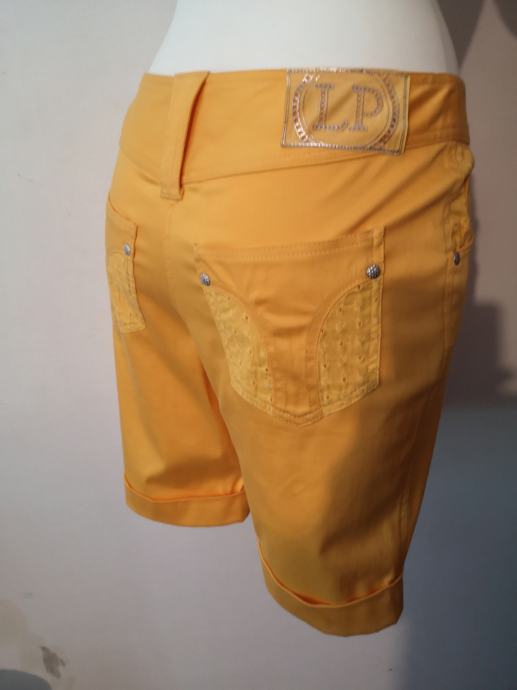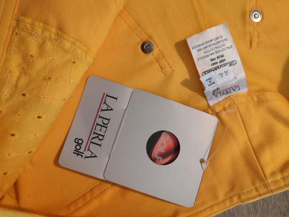 Prodam nove ženske kratke hlače znamke La Perla GOLF, temno rumene barve, modni kroj, izredno kakovostne izdelave, izdelane v Italiji. Velikost je IT 44, EU 38, material 97% bombaž, 3 % elastan