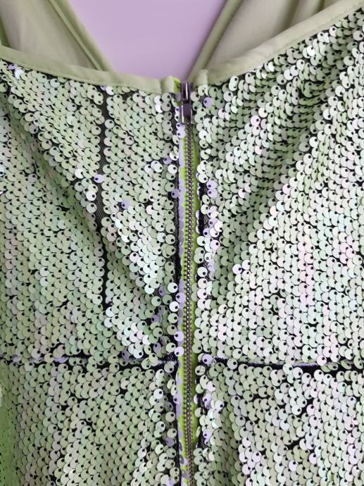 Nošen samo 1x za posebno priložnost, podložen, raztegljiv, ima nastavljive naramnice, zapenja se zadaj z zadrgo
