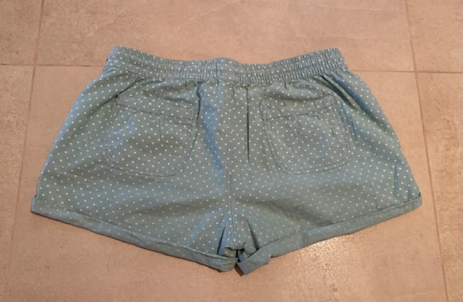 Prodam zelo lepe KRATKE HLAČE, lahke in čudovite, v retro mint barvi z drobnimi belimi pikicami, vrvica za reguliranje v pasu, 2 žepa spredaj in 2 luštna žepka zadaj. 100 % bombaž. Velikost: 38.
