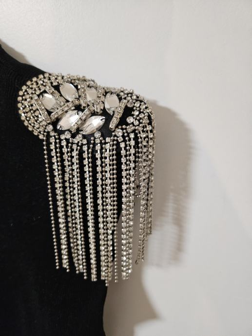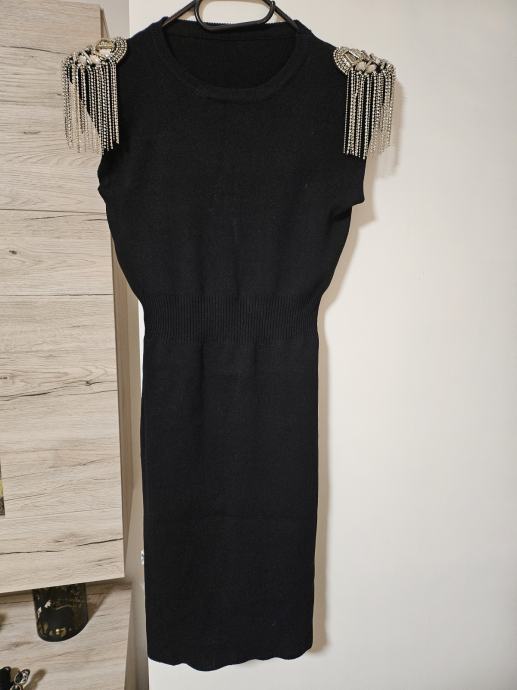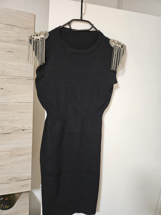 Prodam črno raztegljivo oprijeto obleko, nošeno samo 1x, s čudovitimi srebrnimi detajli. Velikost ni navedena. Dolžina obleke je 91cm. Prevzem v Lj