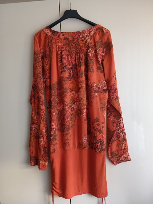 Nošena samo 1x, ni podložena, ni raztegljiva, lahko se nosi kot kratka obleka ali dolga tunika, od ene pazduhe do druge meri 48cm, dolžina je 85cm, ne menjam, ptt ni vključena v ceno