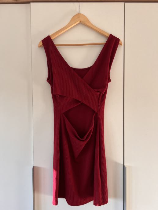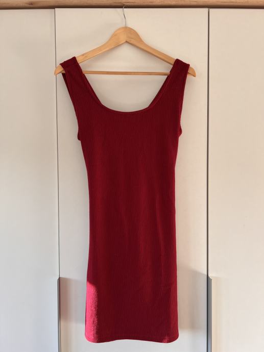 Rdeča bombažna obleka Mango za prosti čas. Oprijet kroj, z deloma odprtim hrbtom, dolžina do sredine stegen. Velikost M, elastičnega materiala, tako da se obleka lepo prilega telesu vendar ni tesna. Redko nošena, v odličnem stanju, kot nova.