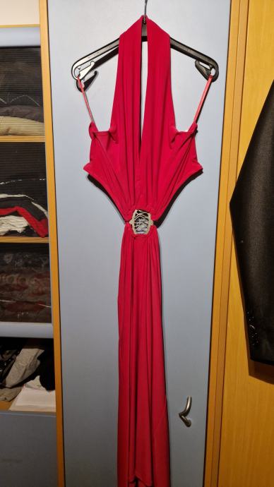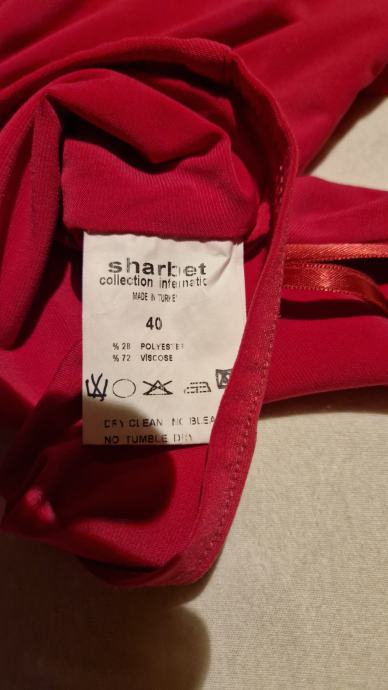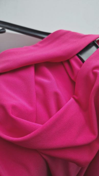 Prodam obleko v št. 40, nošena samo enkrat. Barva je ciklamno roza (slike popačijo barvo zaradi svetlobe) - prikazano na zadnji sliki.