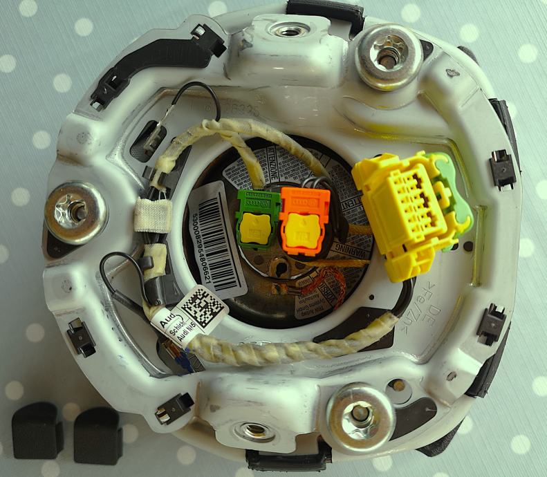 Airbag je OEM (TRW Automotive), nikoli sprožen, demontiran iz vozila Audi A4 2009, kjer je bil volan menjan (razlog: obraba volanskega obroča + multifunkcija).