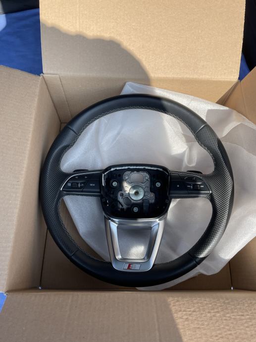 Prodam usnjen volanski obroč za Audi A4. Volan je S-Line, s tipkami za avtomatski menjalnik. Je iz vozila letnik 2022.