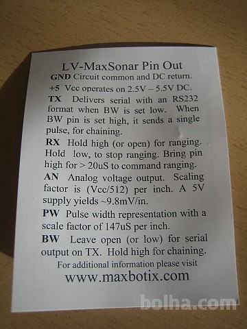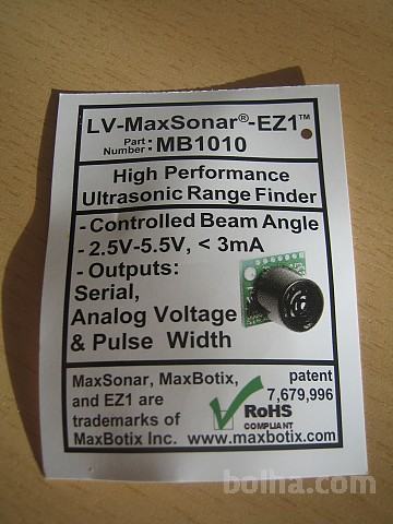 Prodam LV-EZ1 Sonar senzor za Arduino ali Raspberry PI projekte. Nov, originalno zapakiran.