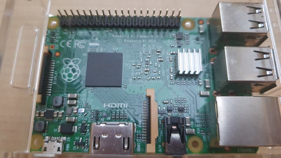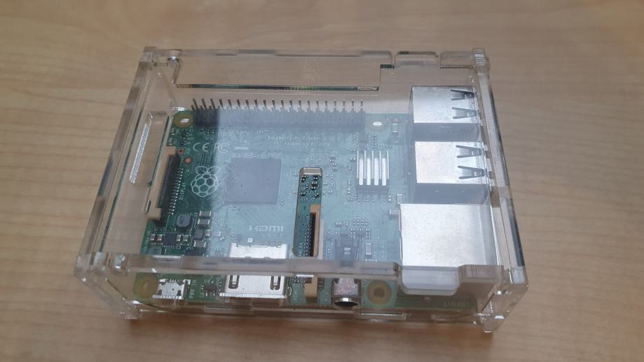 Rabljen Raspberry Pi 2 model B z zaščitno škatlico.