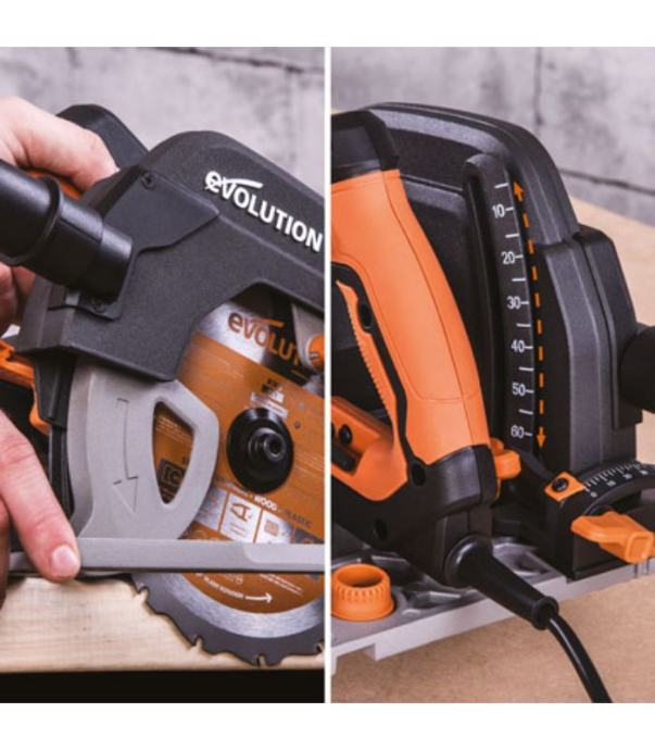 EVOLUTION R185CCSX Električna, ročna krožna žaga, set z vodilno letvij
