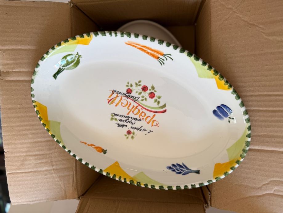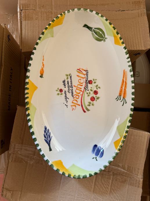 Prodajam več kartonov rustikalnih ovalnih krožnikov za testenine. Vsak karton vsebuje 6 kosov.