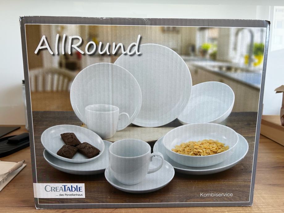 Prodajam jedilni servis za dve osebi, saj ga ne potrebujem. Set vsebuje 2 navadna krožnika, 2 globoka krožnika, 2 desertna krožnika, 2 podstavka za skodelico in 2 skodelici.